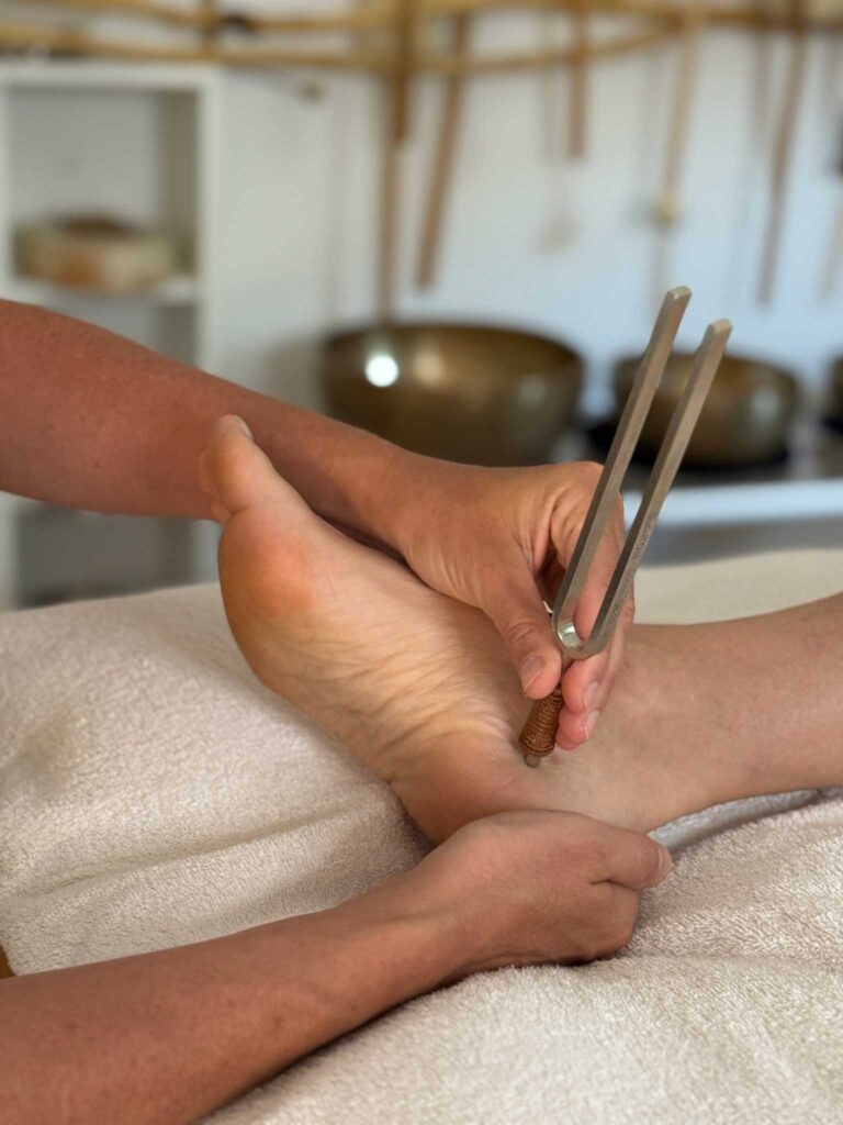 Ich zeige dir, wie du mit der Stimmgabel die Reflexzonen beschwingst sowie unterschiedliche Techniken, um den Körper ins Gleichgewicht zu bringen